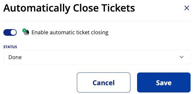 - Enable Auto-Close Behavior Toggle Enable automatic ticket closing to ON.