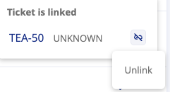In case you want to unlink a Linear ticket that is attached to a security issue, simply click the Unlink button, and approve the Unlink action on the dialog