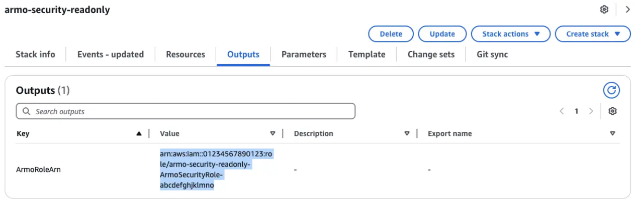 ARMO uses AWS CloudFormation StackSets to connect to your AWS Organization by deploying a read-only IAM role across all accounts in one operation