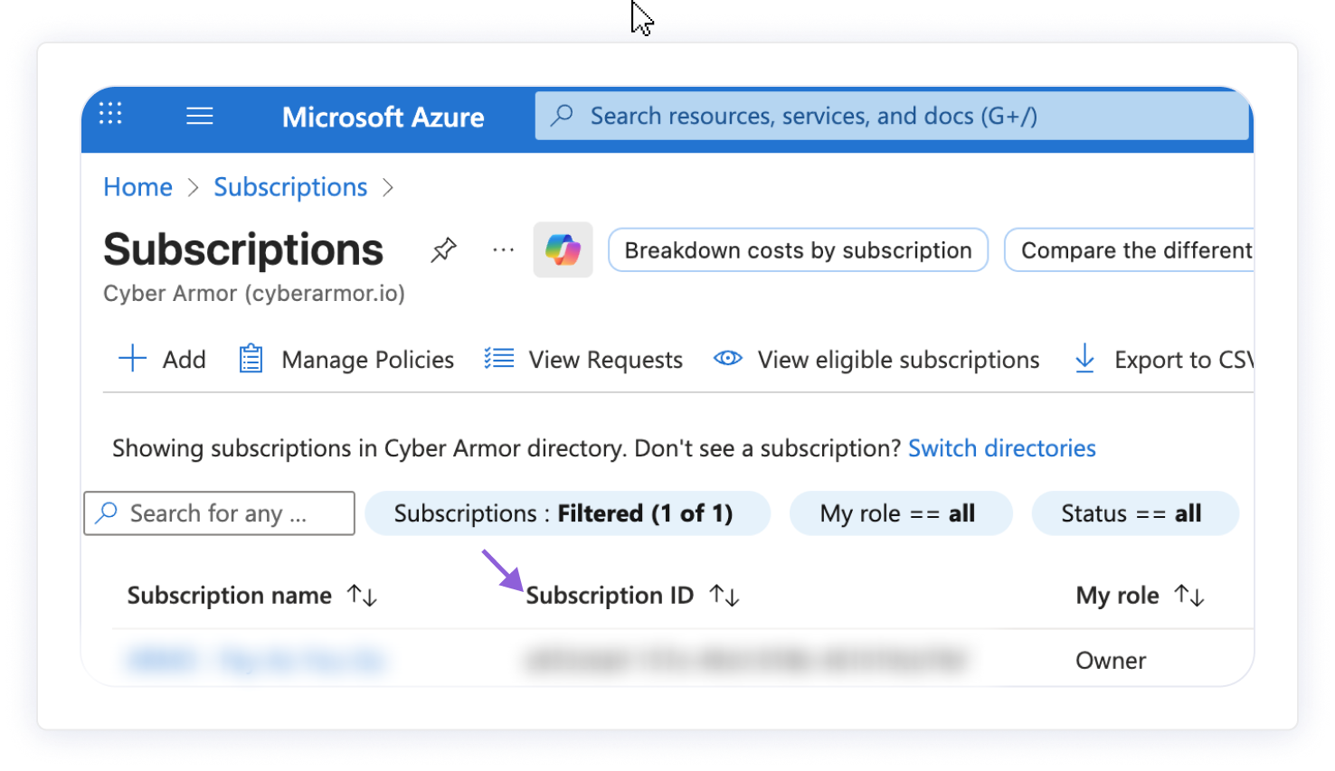 This document describes how to onboard a single Azure subscription into ARMO Platform. After onboarding, ARMO will have visibility into the account’s resources, enable governance / compliance policies, and monitor for risks