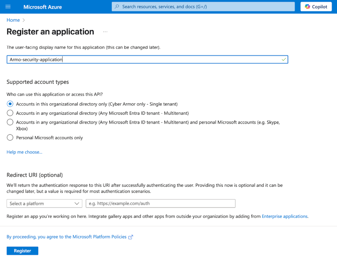 - ARMO requires an Azure Active Directory (Entra ID) App Registration to authenticate securely.