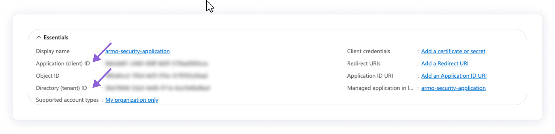 - Directory (tenant) ID and paste in the ARMO connection wizard